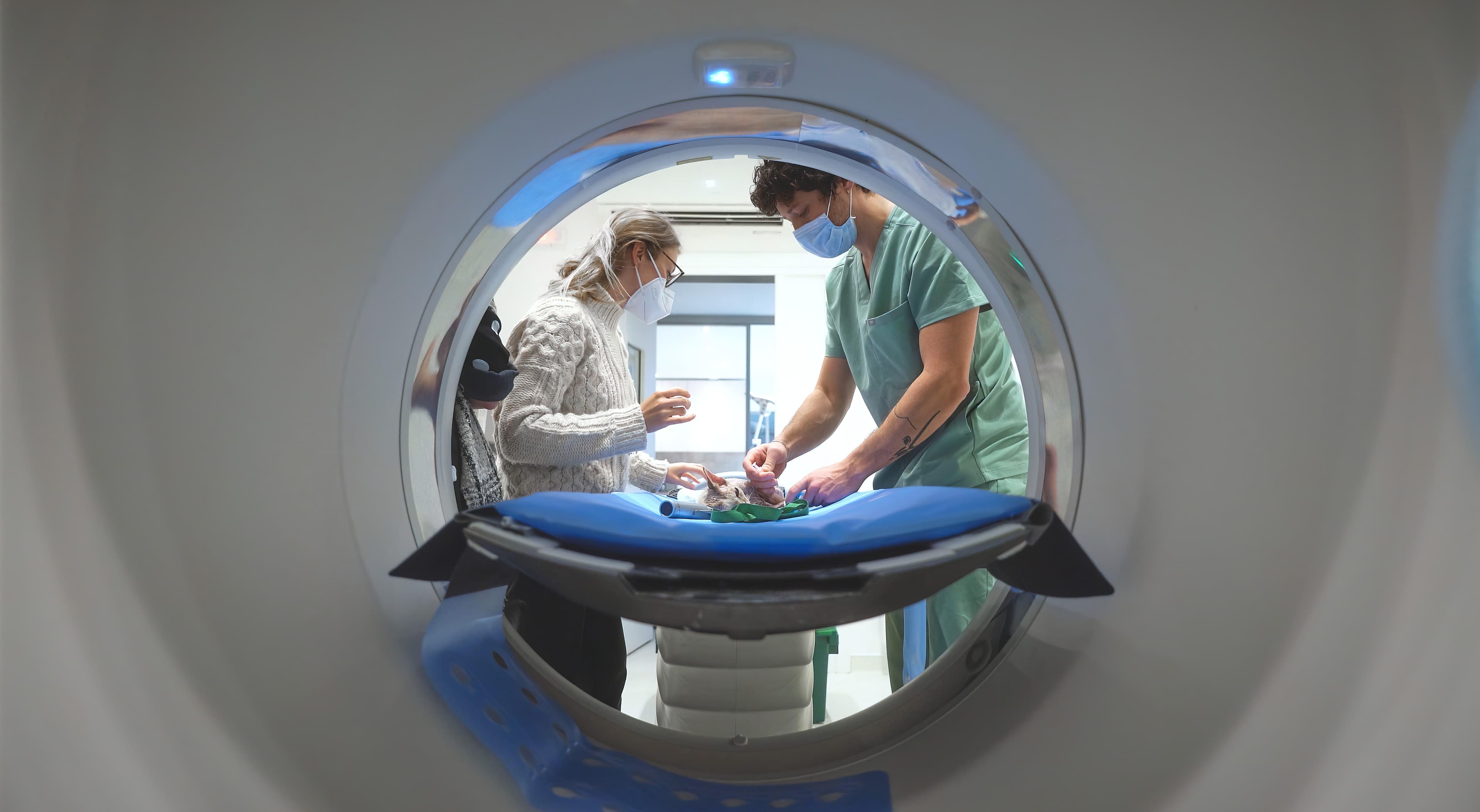 The examination takes place under general anesthesia. An intravenous line (catheter) is placed beforehand to ensure the proper conduct of anesthesia and the injection of the contrast product. The examination only lasts a few minutes. Your pet is then kept under observation for a few hours before being discharged the same day.
